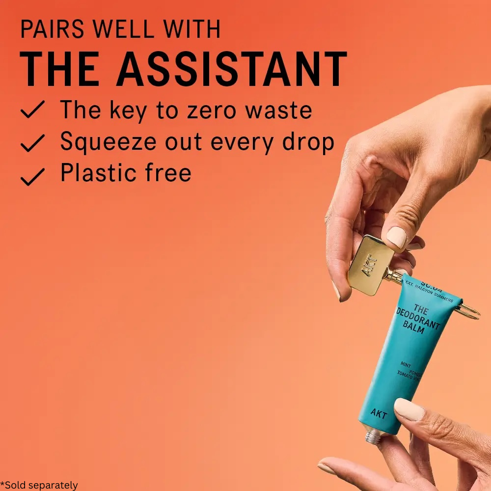 Pierce the seal with The Assistant (sold separately) or a pen. Squeeze a small amount of The Deodorant Balm on your finger or The Applicator (sold separately) and massage onto freshly cleansed skin – underarms, forehead, feet or chest – anywhere you need effective, all day protection.
